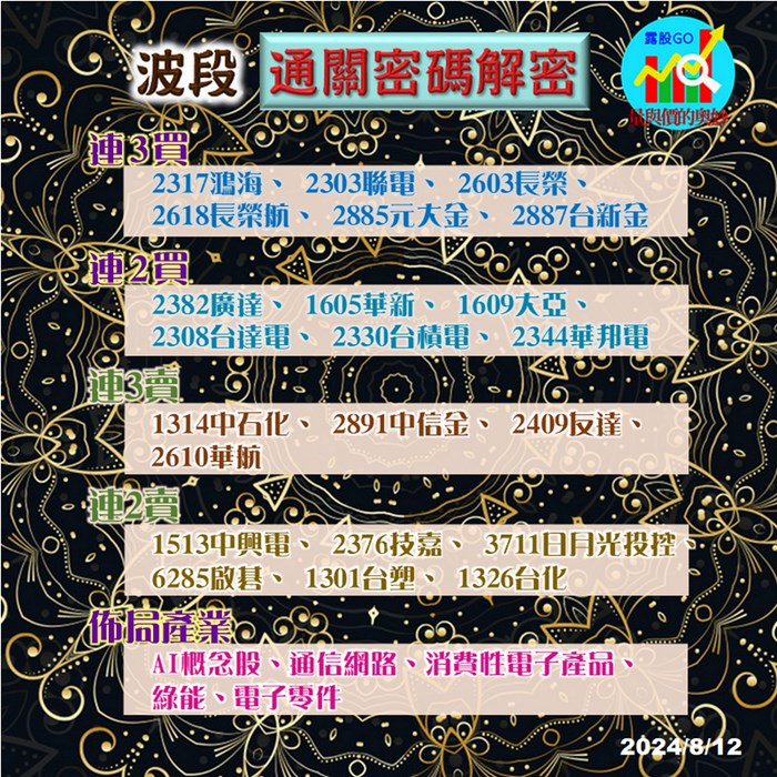 20240812台細產業籌碼總體檢/股票通關密碼/籌碼變化前十類股/各類股籌碼與漲跌 (露股go)