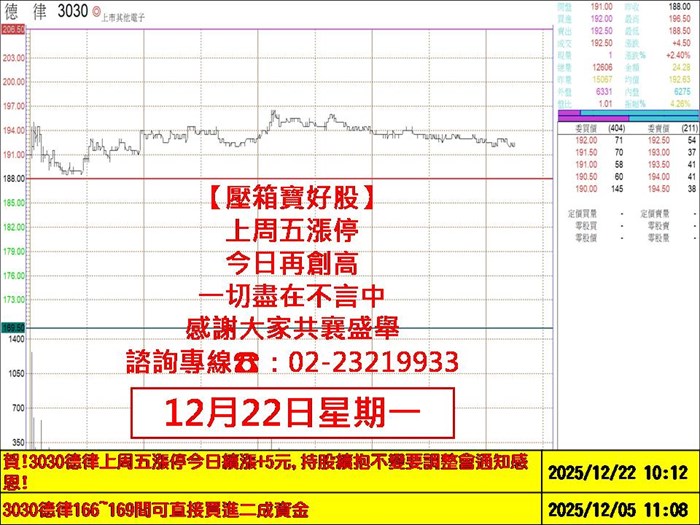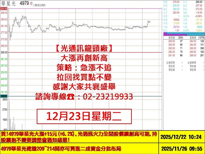 12/24(三)搶賺年前大紅包、華邦電、華星光、群聯⊕大家好,我是陳學進✅方法對→股票對→獲利就來華邦電+44%、華星光+43%、德律+18%、群聯⊕一切盡在不言中LINE@連結網址:https://line.me/R/ti/p/%40gold99Telegram連結網址:https://t.me/gold0999YT個人專屬頻道:youtube.com/@master55688舉手之勞記得!按讚、訂閱、分享、開啟小鈴鐺讓更多人可以看見我們的影片諮詢專線☎️02-2321-9933(24小時專人服務)許多新飆股正在加速表態跨年必買Only One【壓箱寶好股】想要跟上的好朋友歡迎加LINE@私訊大師兄或填寫下列優惠表單真心希望你來跟著我一起體會進出賺錢的節奏與樂趣一起來搶賺年前大紅包👇https://forms.gle/gVGQkWuh46TVVpYN8保證包君滿意!滿意再辦理!!