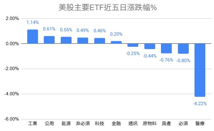 5/5-5/9當周 S&P500指數主要類股ETF漲跌幅各類股中除了醫療之外 其他類股多轉為止穩看來川普關稅影響正在減小美國再次偉大政策影響下 工業 公用ETF反而相對強勢接下來要看的主題回到美中談判川普髮夾彎仍會持續這些操作的最終目標應該是讓Fed降息.美元貶值