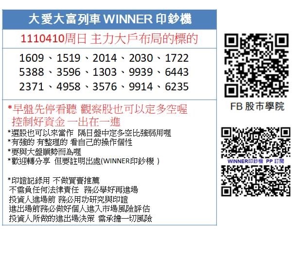 1110424_W日_精選主力大戶+投信布局標的 與 觀盤重點 強股就在WINNER印鈔機 上週分享在社群記事本的15檔股票 有逾半數 本週創新高價