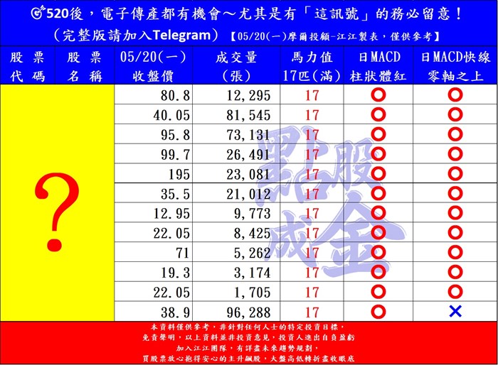🎯520後,電子傳產都有機會~尤其是有「這訊號」的務必留意! Line@連結: https://goo.gl/ZTTLbu TG連結: