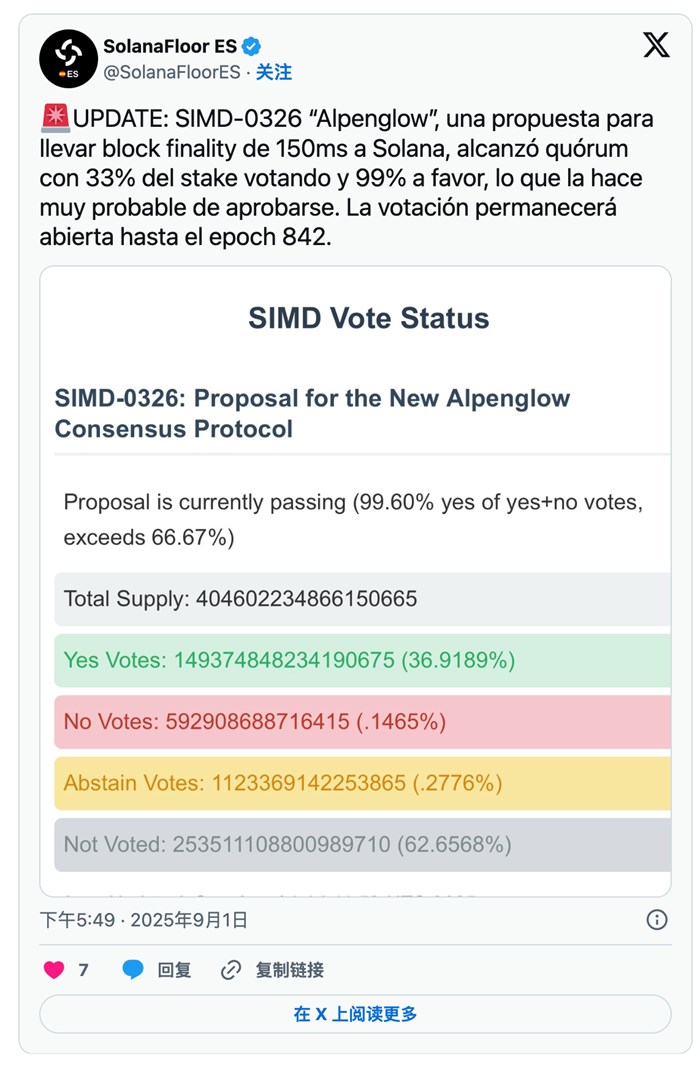 Solana網絡剛剛通過了一項重磅治理提案,為生態注入新的動能,並進一步強化了市場對SOL價格的看漲預期。在社區高達 99% 的支持率 下,備受期待的 Alpenglow 升級 已順利通過,這將為Solana的運作機制帶來全面革新。過去7天裡,SOL價格拉升近8%,而 以太坊(ETH)則小幅回調0.3% —— 這種走勢分化讓部分交易者開始猜測:Solana是否即將甩開ETH,走出獨立行情?https://x.com/SolanaFloorES/status/1962437745399279888這次網路層面的技術升級,將 交易處理速度從12.8秒直接拉低到僅150毫秒。換句話說,Solana的速度幾乎已經接近網路本身。相較之下,以太坊(ETH)依舊需要幾秒鐘才能完成一次鏈上交易確認。Solana價格預測:若突破楔形整理,SOL可望衝擊700美元從日線圖來看,SOL價格出現明顯壓縮,持續挑戰200美元強壓位。過去幾個月,SOL走勢保持強勁,山寨季=似乎已經正式開啟。以太坊(ETH)和BNB在本輪週期中都已刷新歷史新高,市場普遍認為Solana或將成為下一個衝擊新高的明星幣種。如果SOL能向上突破目前的上升楔形形態,行情或將加速拉升,並突破現有的歷史高點295美元。在Alpenglow升級的推推下,長期來看SOL可望衝擊700美元關口,走勢可能重演今年5月以太坊在Pectra升級後的瘋狂拉升。在這份Solana價格預測中,180美元是關鍵支撐位。回踩這一水平不僅能釋放必要的流動性,還可能為後續上行奠定基礎,同時也將成為晚入場玩家的理想上車點。同時,頂級山寨進入價格探索階段,早期項目如Best Wallet Token ($BEST) 也正加速起飛。結合當前持續火熱的加密預售浪潮,市場情緒依舊高漲。憑藉著高速成長的生態和實際應用價值,分析師普遍看好 $BEST今年可望實現10倍漲幅,並成為本輪牛市的黑馬計畫之一。Best Wallet Token ($BEST) 融資接近1,600萬美元,投資人熱度持續升溫Best Wallet Token ($BEST) 賦能下一代行動端加密錢包,支援60+公鏈資產,並提供用戶低費率Swap體驗。憑藉簡潔的介面設計與流暢的互動體驗,該應用程式在 蘋果App Store與GooglePlay商店收穫了大量好評。持有 $BEST 的用戶可享 手續費折扣、提前體驗新功能,以及專屬工具 “Upcoming Tokens” —— 一款強大的鏈上掃描器,幫助投資者捕捉潛在 10倍到100倍的頂級加密預售機會。隨著 Best Wallet 應用用戶基數的快速增長,對 $BEST 的需求預計將迎來爆發,早期買進者預計將在下一波大行情前佔據稀缺先機。上車非常簡單:前往 Best Wallet Token 官方網站並連接你的錢包(如 Best Wallet 應用程式本身),即可使用 加密貨幣或銀行卡 在幾秒鐘內完成購買。按此瀏覽原文免責聲明加密貨幣投資風險高,價格波動大,可能導致資金損失。本文僅供參考,不構成投資建議。請自行研究(DYOR)並謹慎決策。