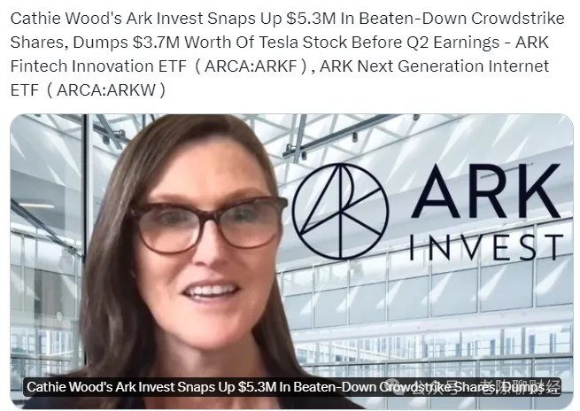凱西伍德(木頭姐)所在的方舟基金在周一盤中進行重大的部位轉移。方舟基金旗下的ARKF(方舟金融科技創新ETF)與ARKW(方舟下一代網路ETF)共買進20219股Crowdstrike股票,依照當日收盤價格263.91美元計算,價值約534萬美元。