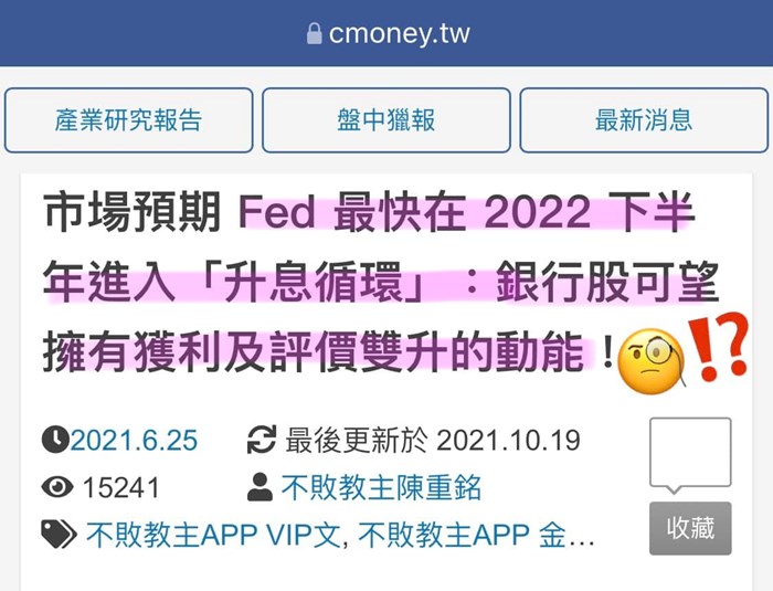 2022年Fed升息、該買入金融ETF或金融類股嗎?