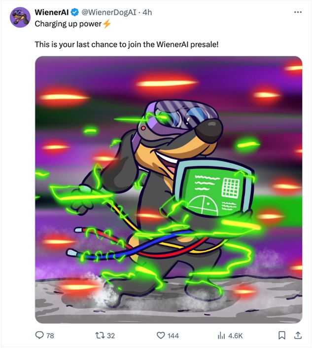 一位加密貨幣鯨魚花費超過37萬美元購買了WienerAI ($WAI) 代幣,但在預售結束前的幾個小時內,仍有一些代幣可供購買。