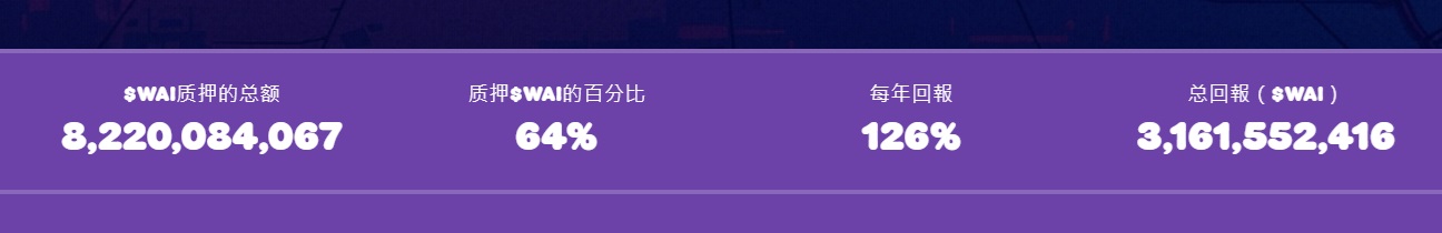 目前,質押者已累計獲得31億$WAI獎勵。已經有64%的籌集資金被鎖定在質押中(共計81.8億$WAI),因此繼續質押有很強的動力。