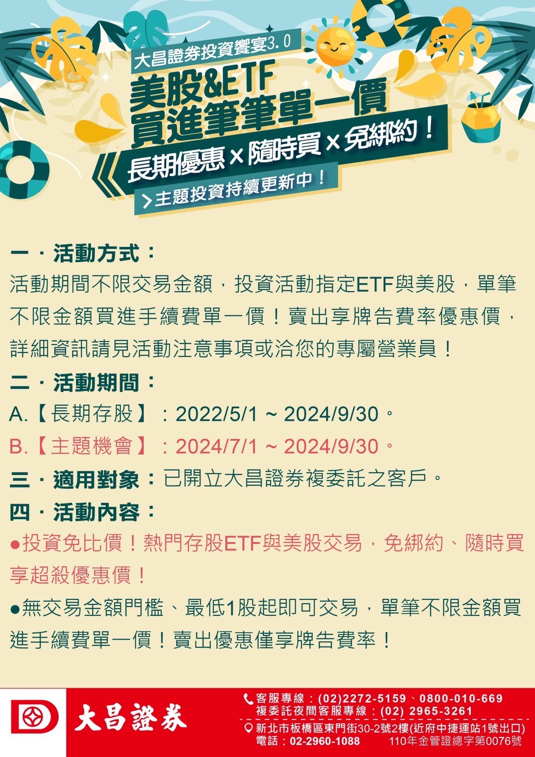 大昌證券提供手續費優惠 活動標的單筆買進不限金額通通固定手續費 ❤❤❤