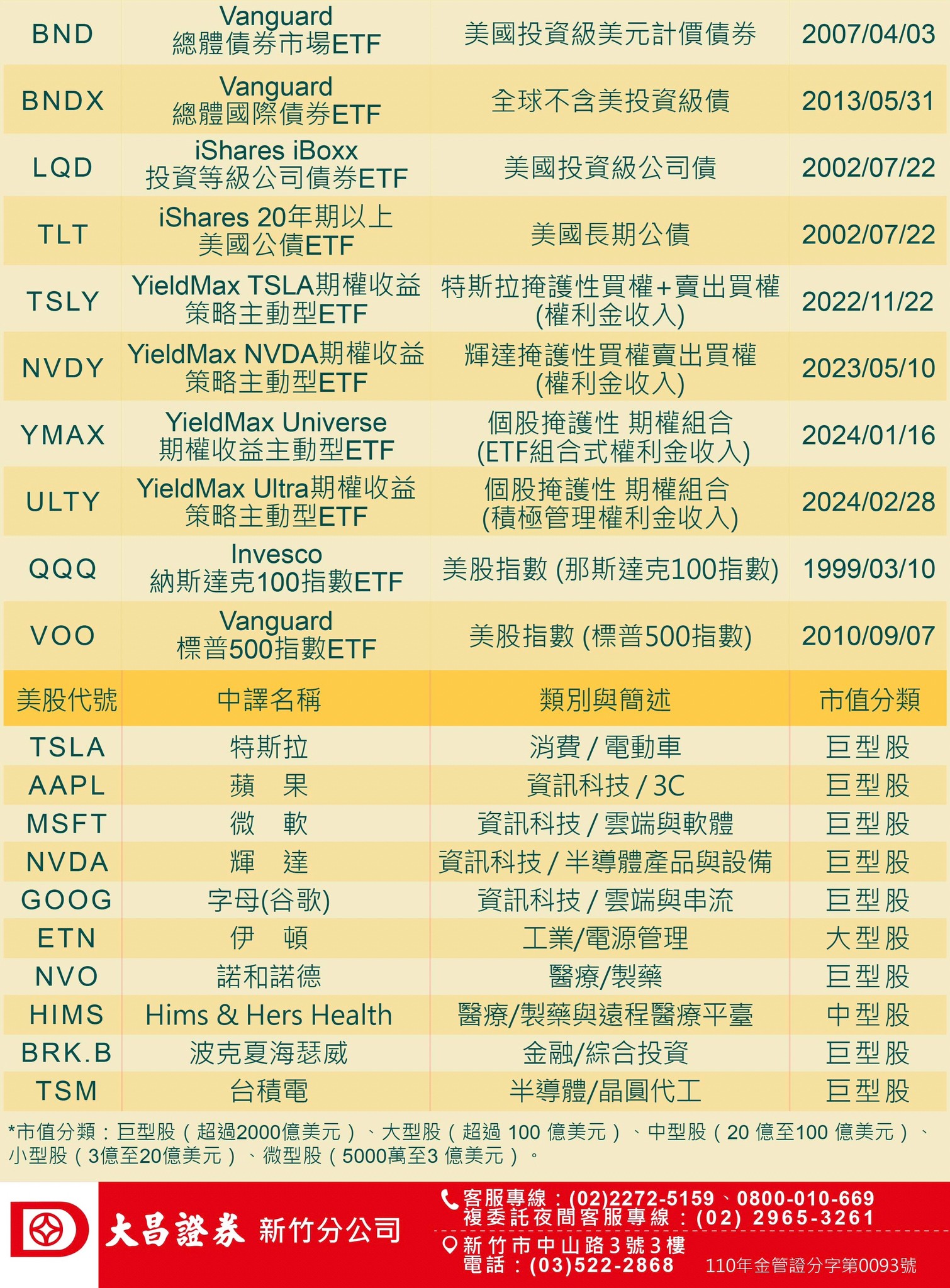 不僅存股個股還有多檔熱們美股 如AAPL。NVDA。TSLA等等..
