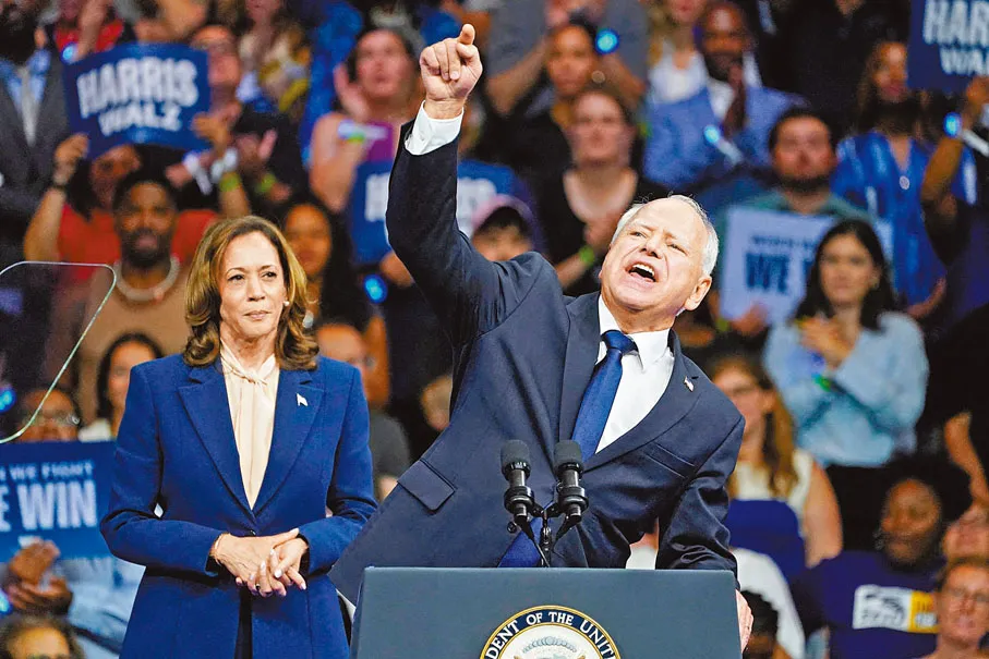 美國民主黨總統候選人賀錦麗與剛選定的副手、明尼蘇達州州長沃爾茲,周二(8月6日)在賓夕法尼亞州最大城市費城首次同台造勢,強調唯有美國才能讓兩個中產家庭的孩子走入白宮。賀錦麗表示,共和黨總統候選人川普代表的是混亂、厭惡且恐懼的美國,她追求的則是擁有投票權、生育及免受槍支暴力等基本自由的美國,決不走回頭路。川普作出反擊,指沃爾茲可能是史上最差的副總統,只是賀錦麗的橡皮圖章。而共和黨副總統候選人范斯則指沃爾茲是極端左翼分子。