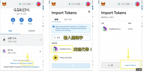 在MetaMask的主页中,滚动到最底部,找到“导入代币”(Import Token)选项。点击后,在搜索框中输入代币的关键字(如“FLL”),如果代币存在于MetaMask的数据库中,您可以直接搜索到并导入。点击代币并选择“导入代币”即可完成添加。
