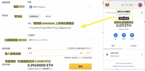 地址:复制MetaMask钱包中的ETH地址,并粘贴到币安的提现地址栏中。在MetaMask界面上方可以直接复制地址。