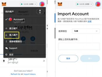 4.在下方提供的输入框中,粘贴你的私钥,然后点击导入即可将账户添加到MetaMask中。