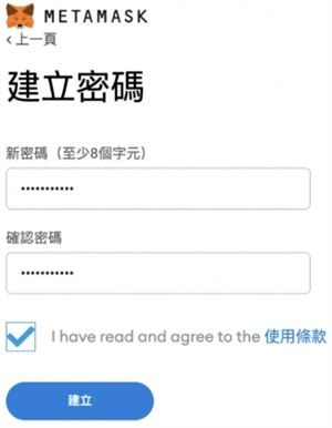 设置一个至少8个字符长度的密码,这个密码将用于您之后登录钱包。