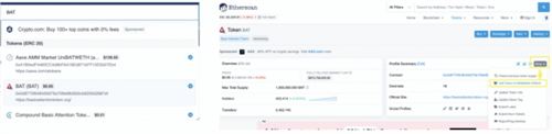 通过Etherscan或Ethplorer等区块链浏览器搜索您想要添加的代币,这里以搜索BAT代币为例。进入Etherscan后,在搜索框中输入“BAT”,然后点击进入BAT的页面。