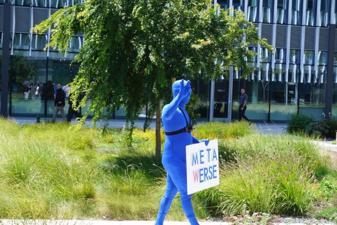 後來小編跟保安聊了一下,才確認這人並不是Meta 員工!保安說他應該是個示威者,上週開始就經常在午飯時間在Meta 辦公樓下面亂晃了。