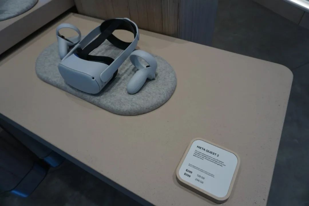 進入店內,首先映入眼簾的就是目前Meta 硬件部門的兩大核心產品:VR 頭顯Quest 2和視頻電話設備Portal。