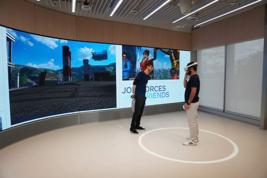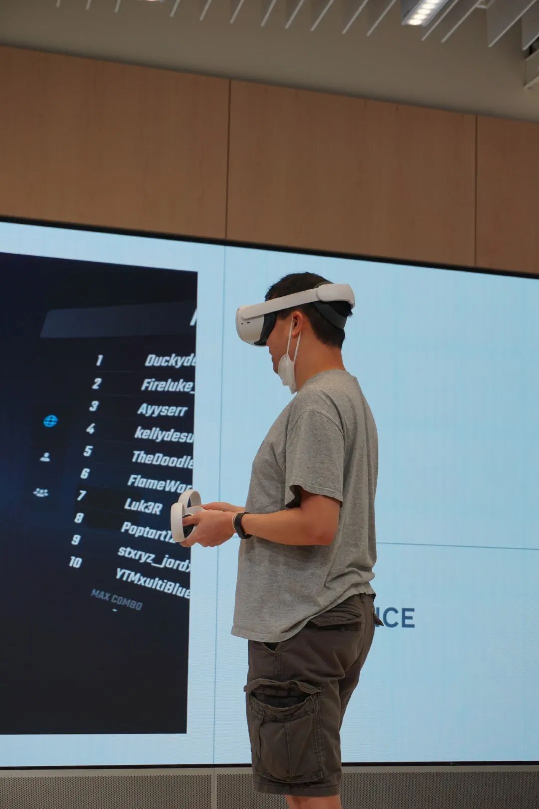 Meta Store 還在店內提供了現場演示體驗。到店顧客可以戴上Quest 2,在一個巨大的空曠場地上體驗包括Beat Saber (節奏光劍)、釣魚、Supernatural (健身等)各種知名VR遊戲和應用。