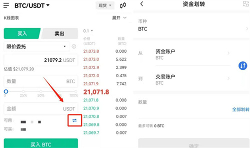 1、将我们的数字资产从资金账户划转到交易账户,如已完成则无须进行额外划转操作。