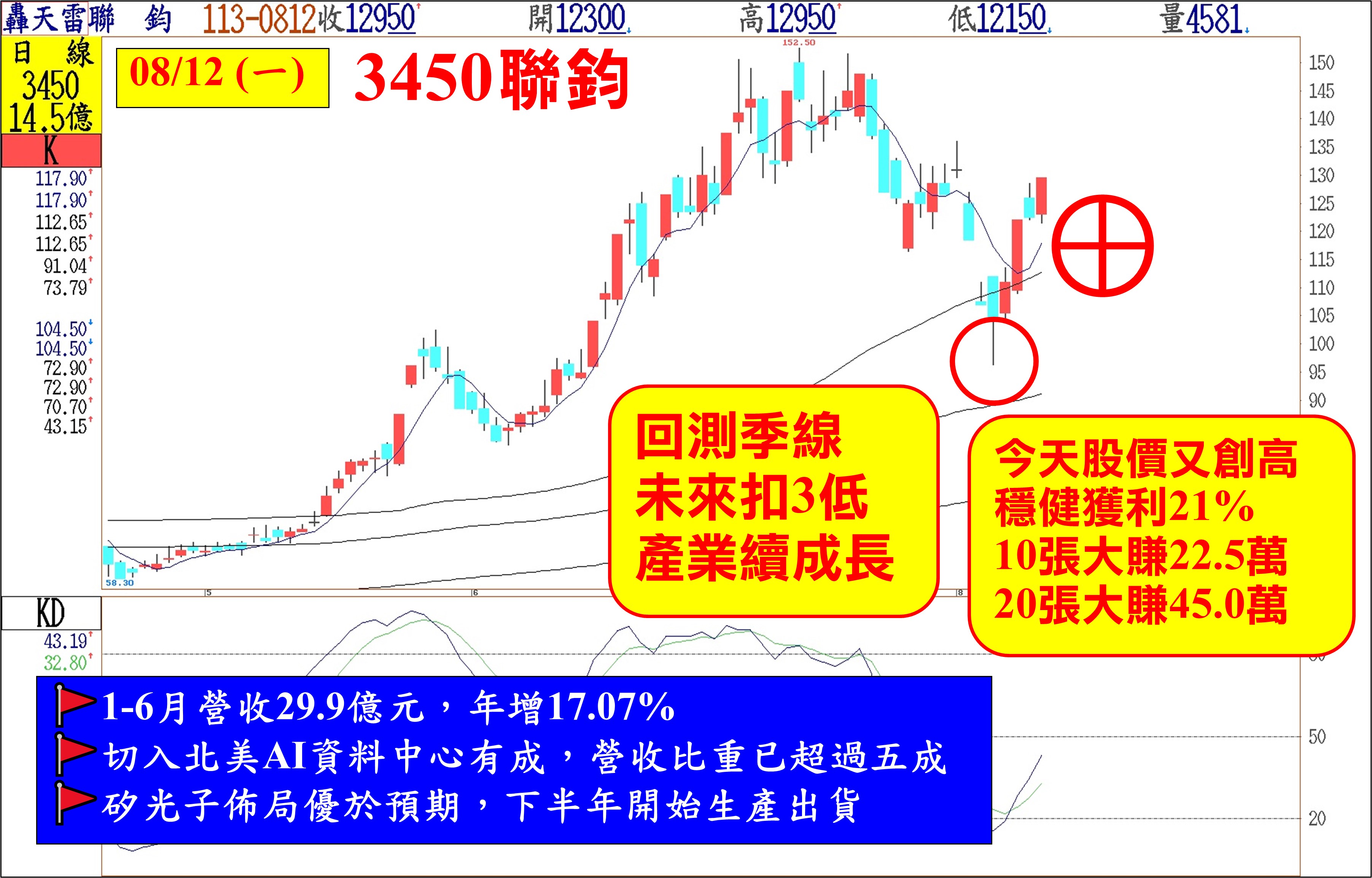 🚩聯鈞:回測季線+扣3低,今創高21%!