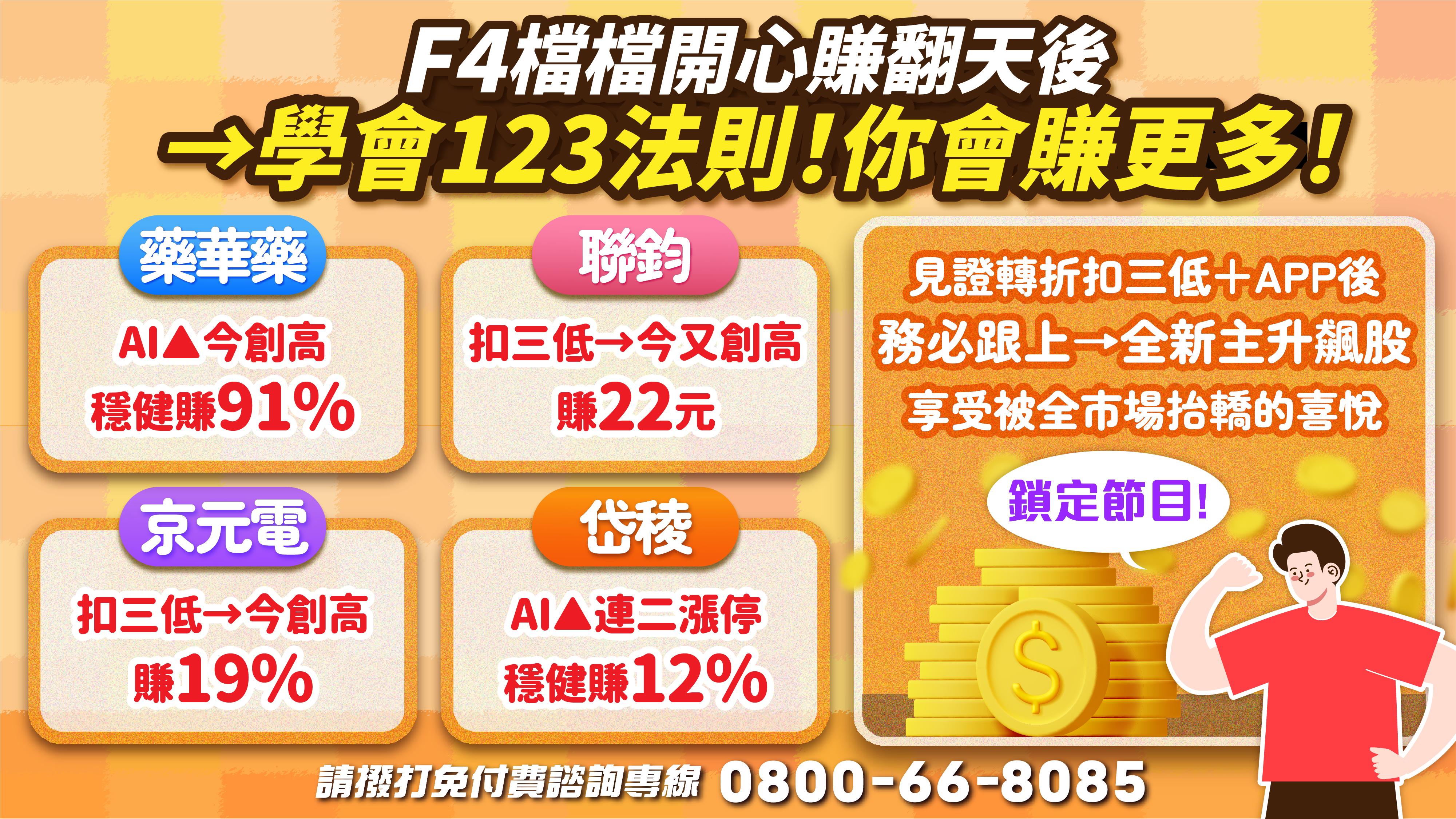 8/12(一)F4檔檔開心賺翻天後→學會123法則!你會賺更多!