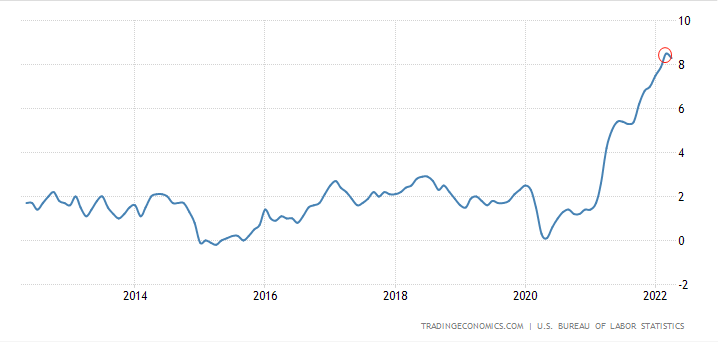 在3月創1981年12月以來最快增速的通膨數據公佈後,部分華爾街市場人士甚至聯準會官員發聲,稱美國通膨已經見頂。儘管4月數據可能印證了這一說法,但很顯然,小幅回落甚至仍超出市場預期的通膨數據,只能證明通膨見頂的說法只是“高情商”的表現。