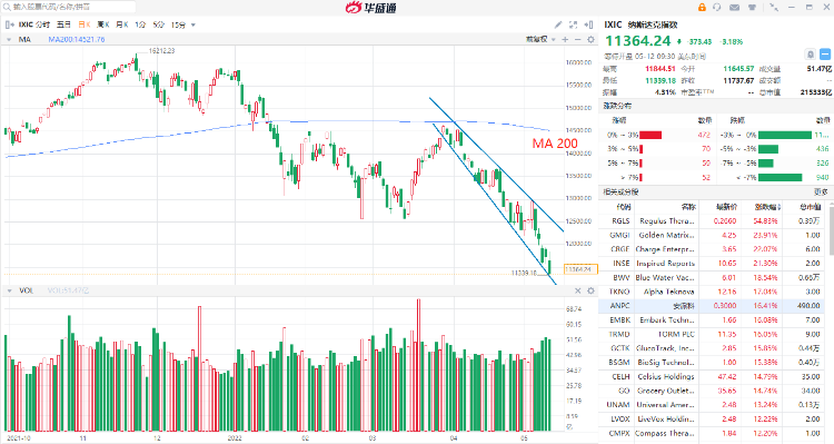 但做投資從來都不是靠聽信機構、大行就能賺錢的,股市實實在在的走勢才能告訴你,當前的真實情況。通常來說,MA200被視為多空分水嶺,而當下的美股明顯處於這條關鍵的均線下方(納斯達克指數為例),且跌勢未見緩和。