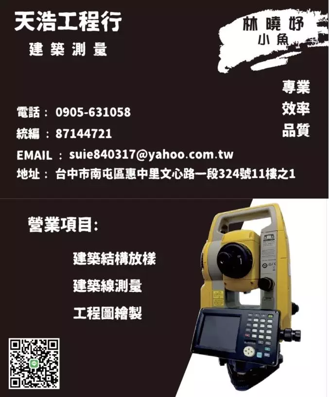 天浩工程行是在地的台中建築測量放樣公司,服務多年,累積了許多好口碑,專精於各項測量工程,有固定的工班,專業的團隊,在所有建築工程細節裡都能讓業主感受到我們的用心,我們注重客戶的需求、滿意度以及施工的品質,任何大大小小測量放樣的問題都是天浩能為您解決的事,只有好口碑、完美的服務才能得到每位客戶的支持,未來我們將會繼續努力用心服務!