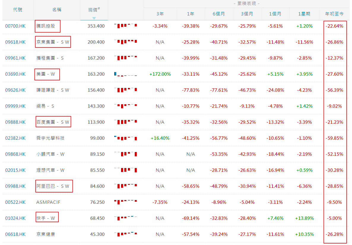 中國經過了一連串封城鎖國對抗疫情後,市場普遍悲觀接下來的經濟數據,但是反觀代表中國高成長的恆生科技指數卻悄悄的築好底部準備緩步往上攻堅,技術面上確實破底機會下降,股價面今年以來成分股的跌幅動輒30~50幾%,相對的獲利與營收卻依然都是正成長居多,有貓膩?