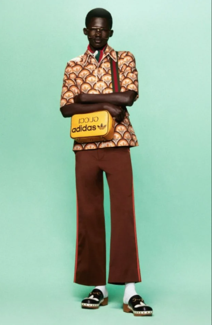 而絕大部分聯名系列,都只是敷衍地將自己的logo 和對方的logo 像補丁一樣拼貼在一起,這也可以感覺到adidas 和Gucci 的惺惺相惜。