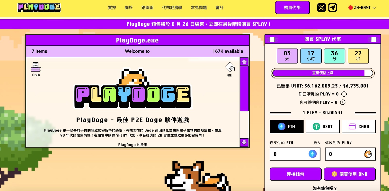 隨著PlayDoge ($DOGE) 進入預售的最後5天,將於8月26日完結。這個結合了加密貨幣和邊玩邊賺(P2E)遊戲的新興項目正吸引著越來越多的投資者關注。自從三個月前啟動籌款以來,PlayDoge 已經成功籌集了超過 600 萬美元的資金,並且其即將推出的加密主題Tamagotchi遊戲在市場上引起了廣泛關注。