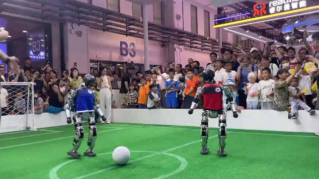 再進一步,加速進化公司的小型人形機器人,已經開始讓小朋友操作,進行踢足球的比賽了。