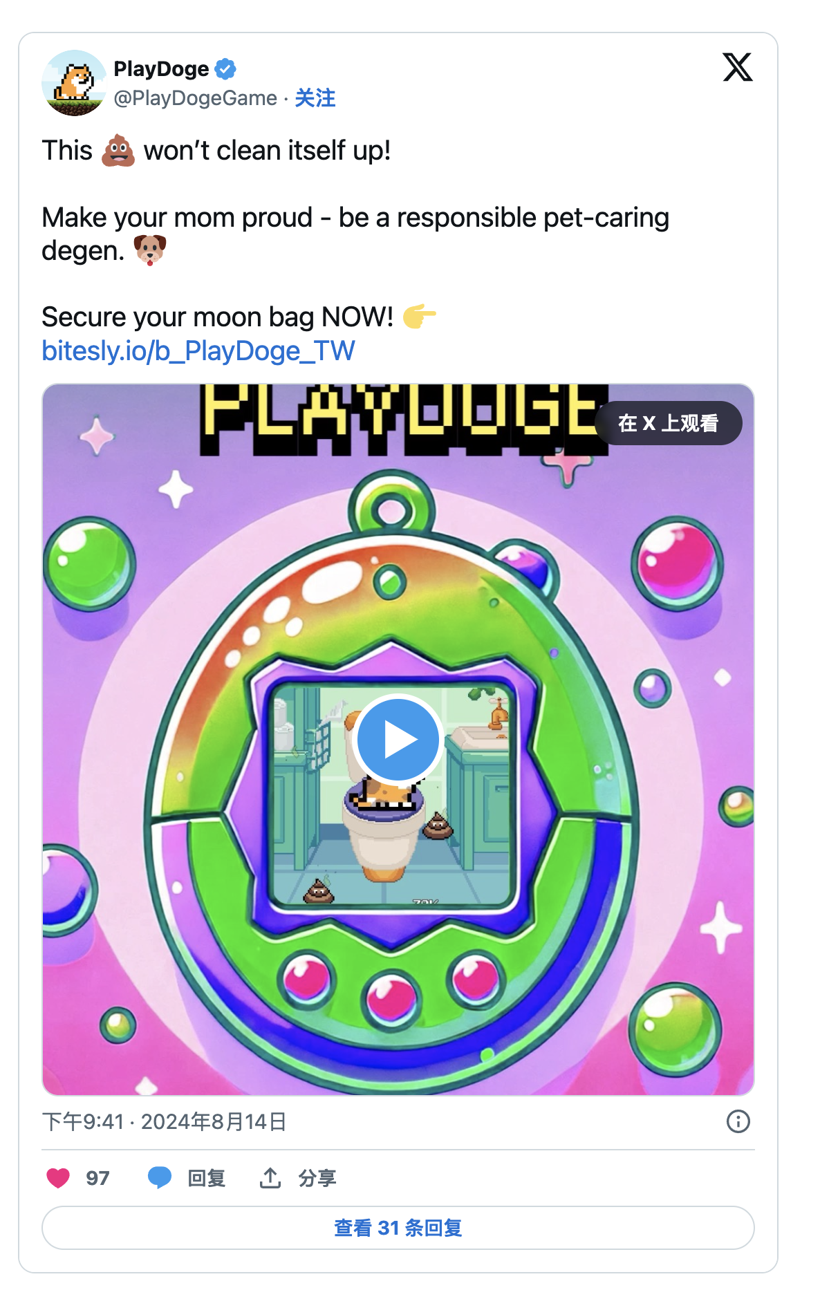 PlayDoge 將標誌性的 Doge 迷因與懷舊的電子寵物遊戲相結合,帶來全新的遊戲體驗。遊戲推出後,玩家可以與加密世界最受歡迎的狗品種互動,並賺取迅速成為新狗狗幣($DOGE)的迷因幣 $PLAY。