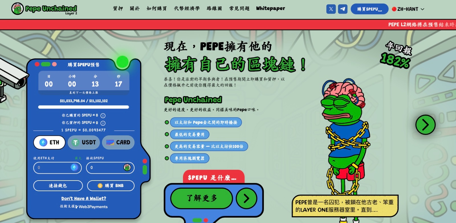 Pepe Unchained不僅依靠迷因幣的流行文化吸引投資者,還通過其Layer 2鏈技術為用戶提供更快、更便宜的交易體驗。這種技術優勢使得Pepe Unchained在競爭激烈的迷因幣市場中脫穎而出。此外$PEPU的價格在預售階段已經數次上漲,且預計在進入交易所後將進一步飆升。
