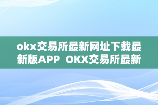 为了方便用户的交易体验,OKX交易所不断优化和更新自己的交易平台。用户可以通过官方网站或者其他渠道获取OKX交易所的最新网址,下载最新版APP。在下载和安装过程中,用户需要注意官方渠道的来源,避免下载不安全的版本。通过OKX交易所的最新版APP,用户可以随时随地进行数字货币交易,查看行情数据,管理自己的资产。