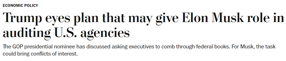 《華盛頓郵報》(Washington Post)指出,幾個月來,特朗普和他的顧問們一直在私下讨論成立一個由知名企業高管領導的委員會,仔細審查政府賬簿,找出需要削減的數千個項目。
