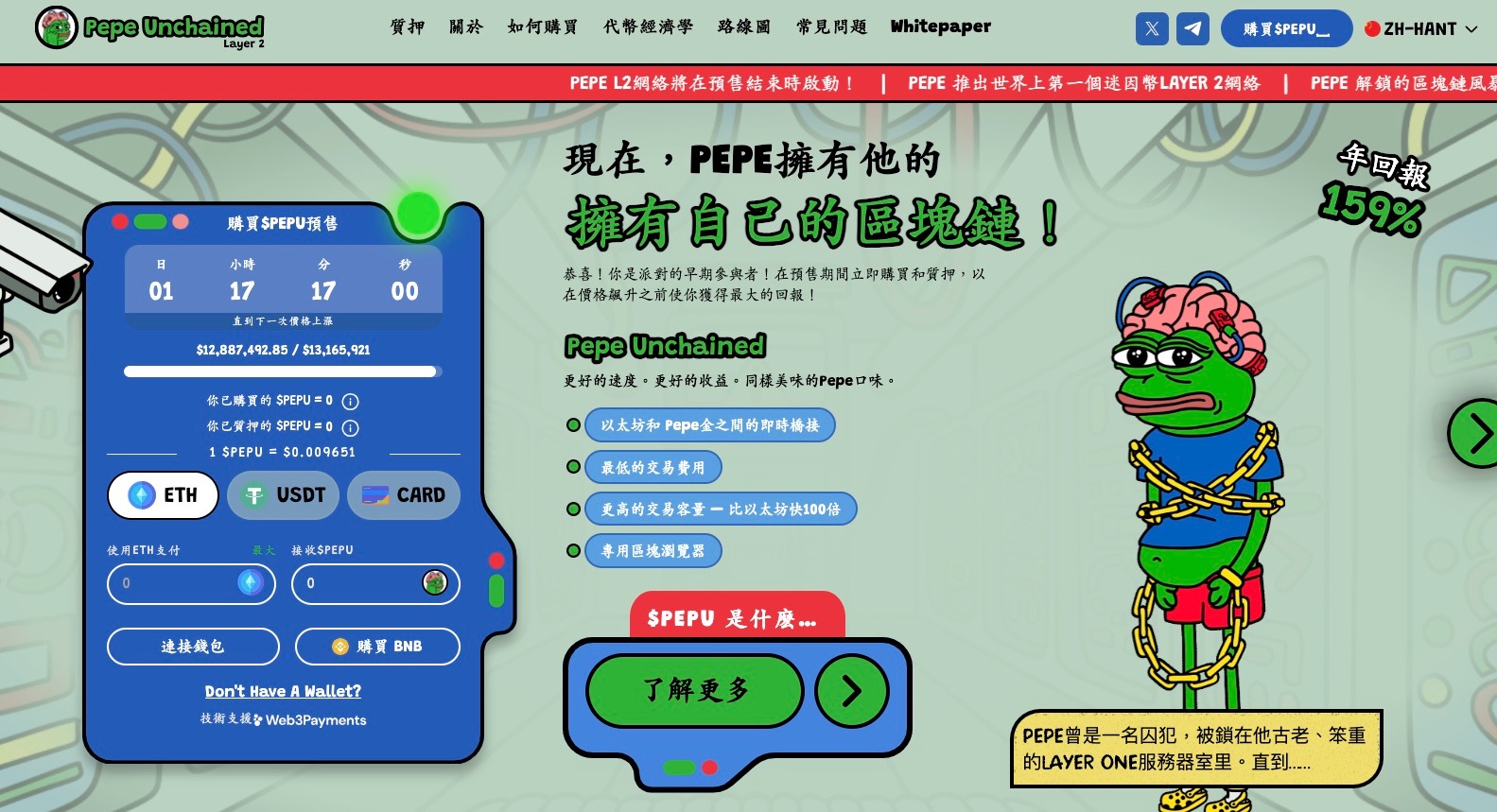Pepe Unchained 的最大亮點在於其專注於meme 代幣的 Layer 2 區塊鏈技術,這使其具備了更高的交易速度和更低的交易成本。根據官方資料,Pepe Chain 的交易速度將比乙太坊快 100 倍,這對於經常進行交易的 meme 代幣愛好者來說無疑是一個巨大的吸引力。