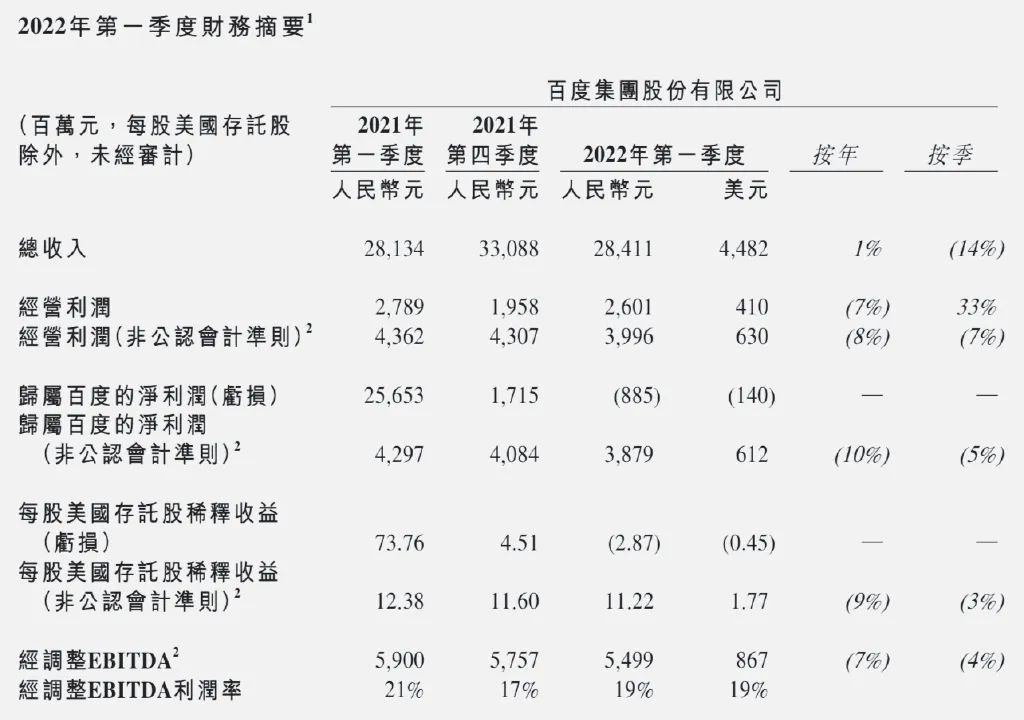 此外,百度5月26日發佈截至2022年3月31日的第一季度未經審計的財務報告。 公司當季實現營收284.11億元,凈利潤(非美國通用會計準則)達到38.79億元,超市場預期。 財報數據顯示,第一季度百度核心研發費用達51.34億元,連續六個季度佔百度核心收入比例超過20%。
