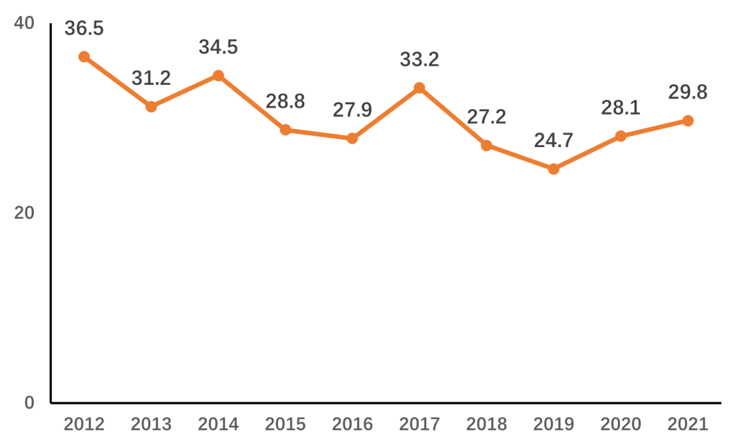 作為一款成立23年的老互聯網產品,QQ的目標人群一直是年輕用戶,不少中小學生學習、社交的溝通工具就是QQ。QQ移動端月活賬戶數逐年下滑,一方面與QQ用戶向微信轉移有關,一位00後告訴DoNews,2021年上大學後,她使用QQ的頻率逐漸減少:“因為班級群各種通知、活動都在微信上進行”;另一方面,中國老齡化程度加劇,年輕人口正持續減少。