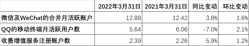 微信的增長也已明顯放緩。2018年,微信與WeChat合併與活躍賬戶數達10.82億,之後開始以個位數增長,2019年增長6%,2020年增長5.2%,2021年增長3.5%。