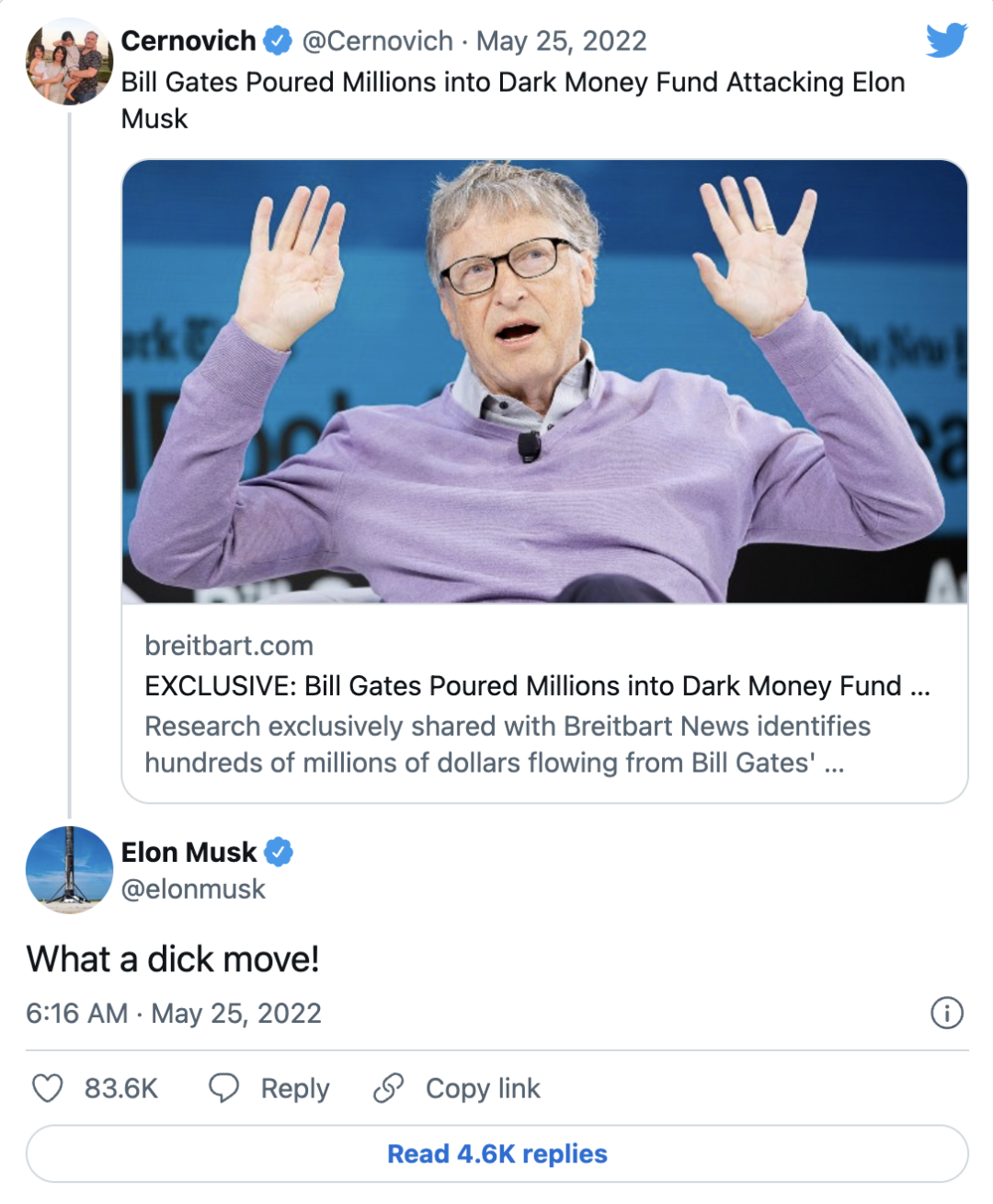 馬斯克對比爾蓋茲·的舉動回覆稱:“這是一個混蛋的行為!”他還回復一位網友說:
