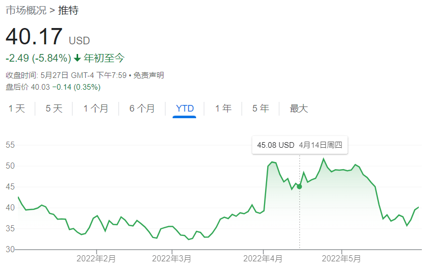 自馬斯克4月14日提出收購要約以來,Twitter的股價已下跌超10%,特斯拉的股價下跌了約23%。
