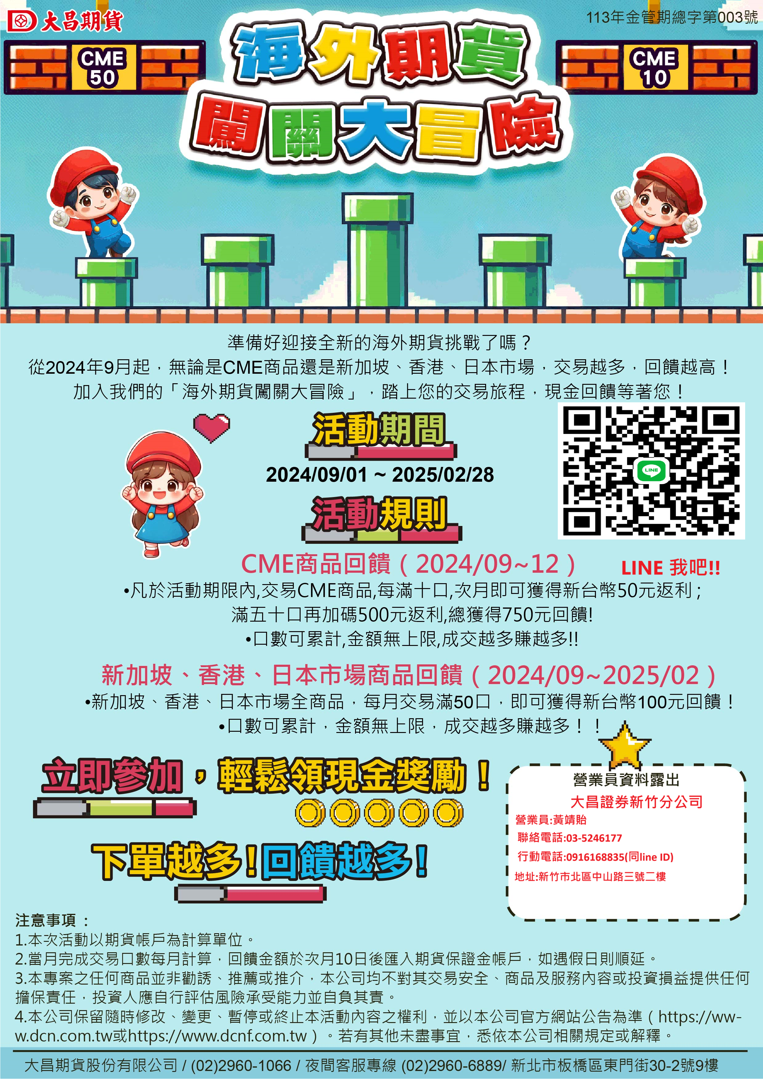 想接觸國外期貨的朋友看過來!!國外期貨手續費優惠快找大昌證券黃靖貽營業員