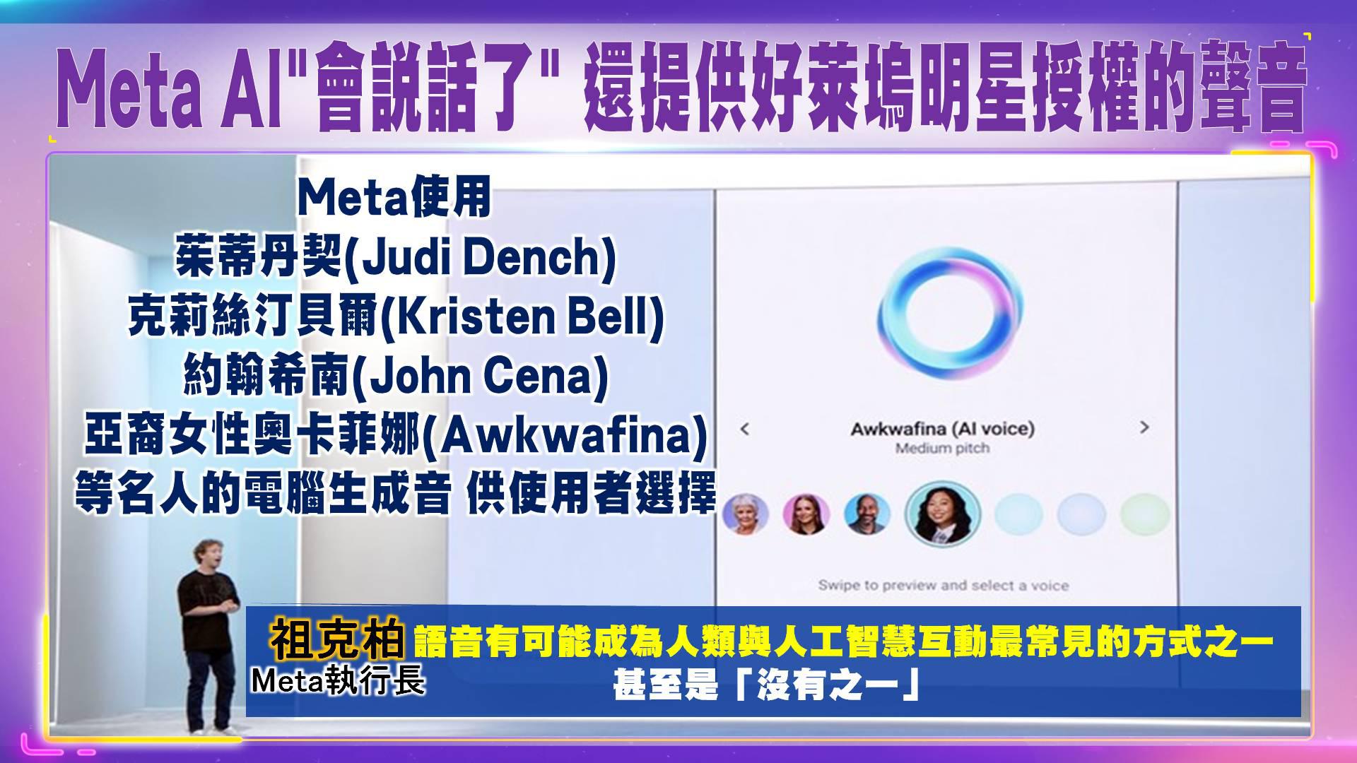- 除了上述硬體新品,Meta 也更新了其聊天機器人Meta AI的功能,讓用戶能透過語音方式進行互動,而非僅憑書面文本。用戶現在能透過Messenger和Instagram 等Meta的應用程式,與Meta AI進行語音對話,並下達指令讓AI進行功能操作。