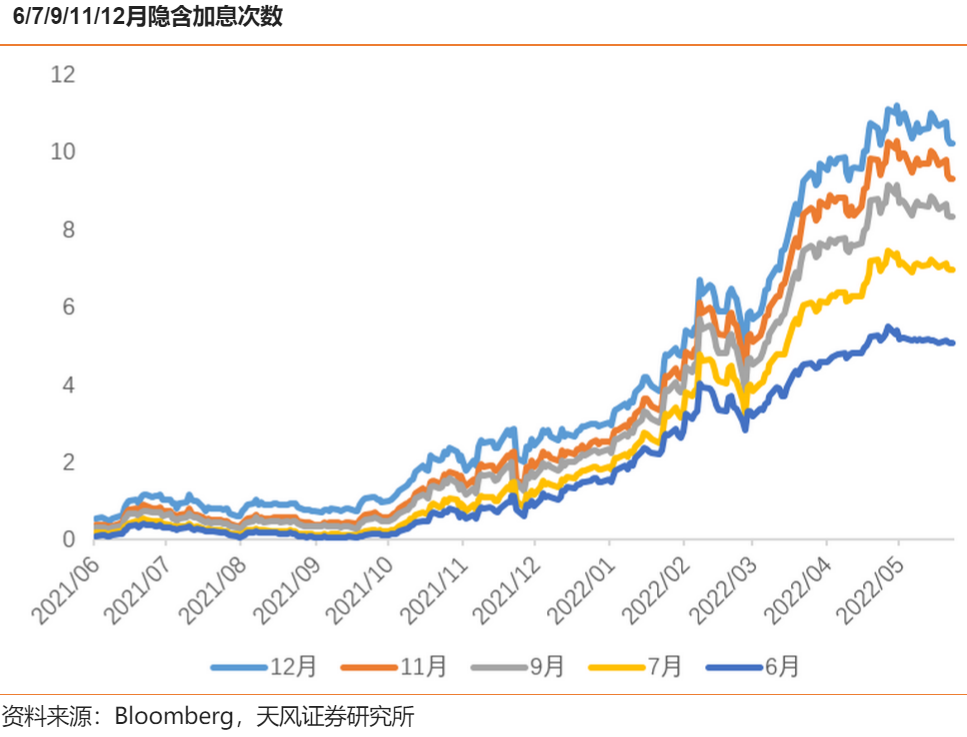 而升息預期也有所降溫, 9月、11月和12月升息預期較此前回落。全年升息幅度從270bp(11次)回落到256bp(10次)。
