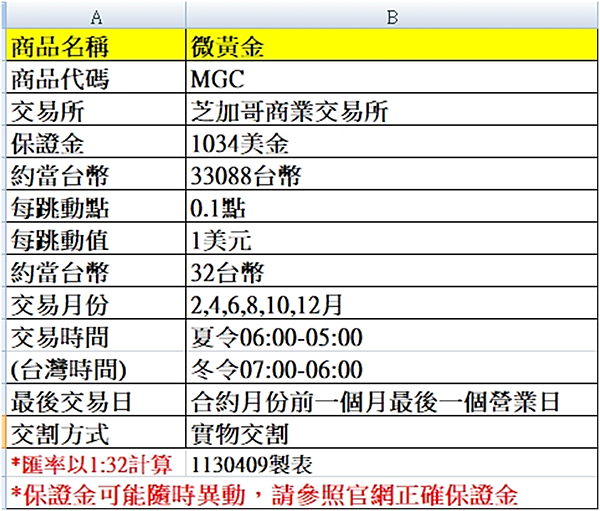 想要交易黃金期貨覺得漲跌損益大太? CME交易所推出合約規格只有1/10的「微型黃金期貨」,較低的保證金, 提供客戶做選擇!