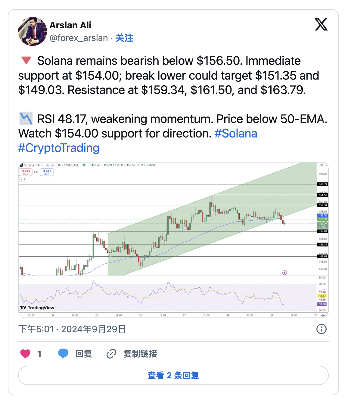 總體而言,只要 Solana 交易價格低於 $156.50,技術面表明看空情緒占主導地位。交易者應密切關注 $154.00 的支撐,以防止進一步的下行風險。