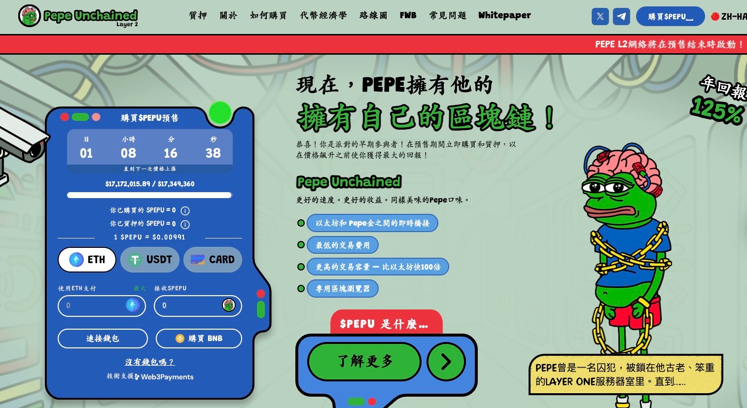 隨著加密貨幣市場的快速變化,投資者正尋求新的機會來增加收益。乙太坊(ETH)的質押收益與新興的Layer-2模因幣項目Pepe Unchained都在吸引著市場的廣泛關注。這兩個項目分別代表著去中心化金融(DeFi)和模因幣市場的不同創新,為投資者提供了不同的增值途徑。本文將介紹ETH質押的潛力以及Pepe Unchained的市場影響。