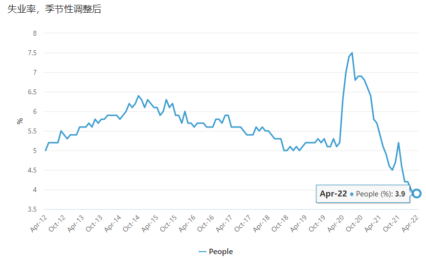 4月份澳大利亞就業人口增加0.4萬人,遠低於預期增幅3萬人。澳洲聯儲採取的極端緊縮政策將迫使公司對投資機會施加更多篩查。這將導致就業人口的進一步下滑。