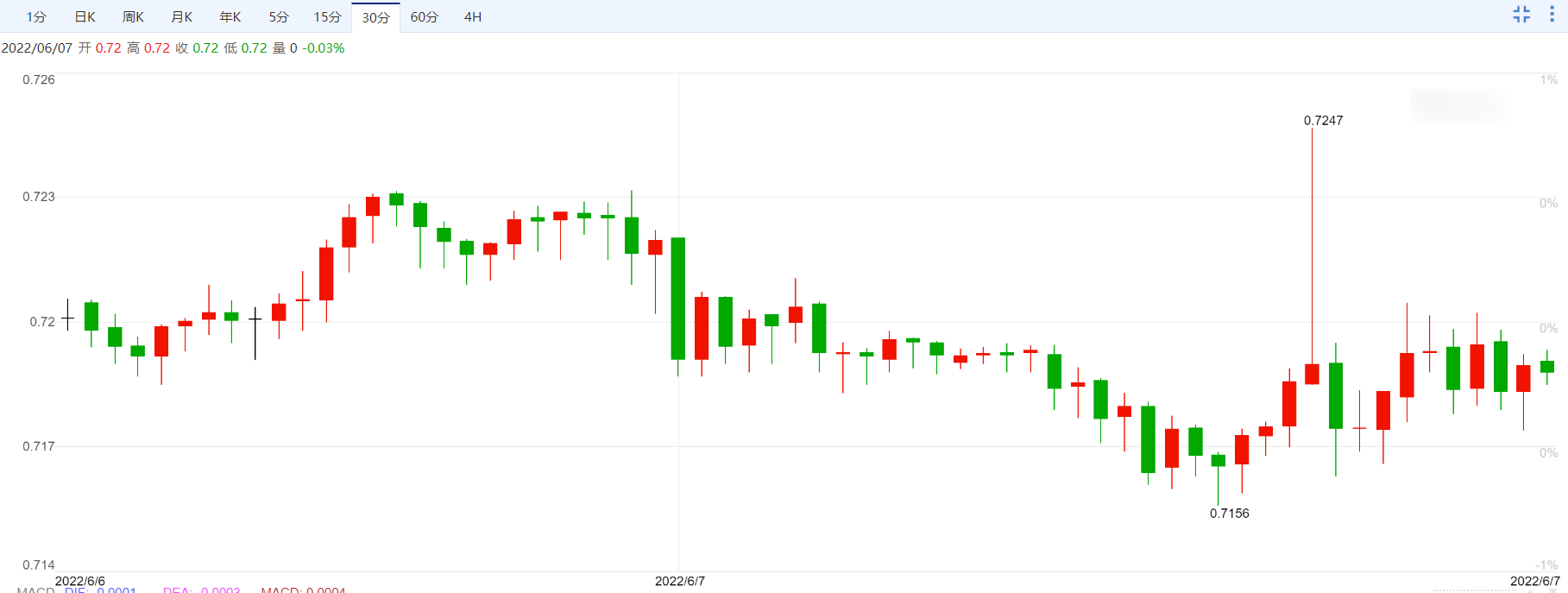 香港時間週二(6月7日)12:30,澳洲聯儲公佈利率決議,將利率從0.35%上調50個基點至0.85%,市場預期為上調至0.6%,大超預期。