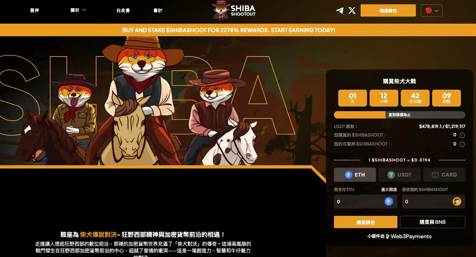 Shiba Shootout 是一個以西部為背景的迷因幣項目,具有濃厚的懷舊風情。玩家將沉浸在充滿冒險與挑戰的西部世界中,扮演牛仔角色,參與各種激動人心的任務和戰鬥。遊戲的設置包括各種西部經典元素,如仙人掌質押、篝火故事和幸運套索彩票等,這些元素不僅增添了遊戲的趣味性,也為代幣的實際應用賦予了更多價值。